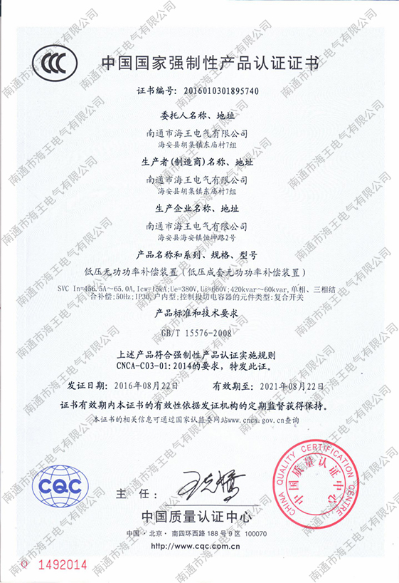 - 中國(guó)國(guó)家強(qiáng)制性產(chǎn)品認(rèn)證證書(shū)