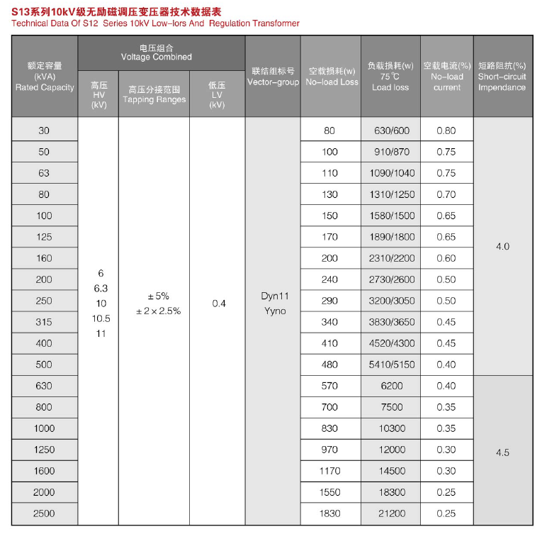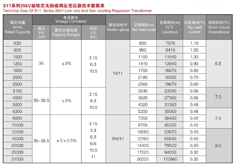 S11~S13-10KV~35KV級低損耗無勵磁調(diào)壓變壓器